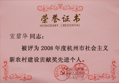 日前,東華鏈條集團(tuán)董事長(zhǎng)宣碧華被中共杭州市委、杭州市人民政府授予 “2008年度杭州市社會(huì)主義新農(nóng)村建設(shè)貢獻(xiàn)獎(jiǎng)先進(jìn)個(gè)人”榮譽(yù)稱(chēng)號(hào)。