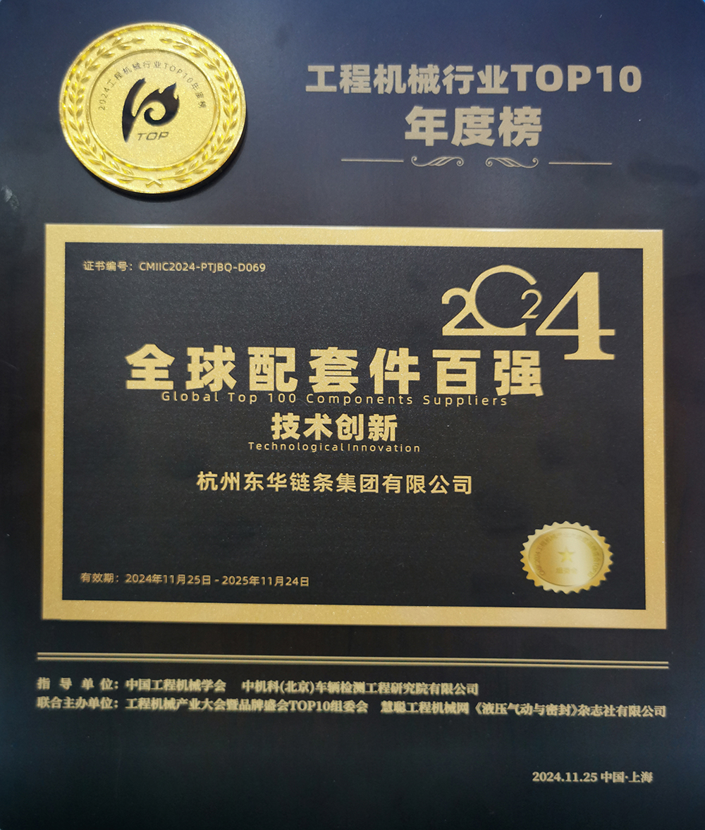 會上,東華獲評“2024工程機械行業(yè)TOP10全球配套件百強技術(shù)創(chuàng)新”獎。東華鏈條集團副總經(jīng)理楊小勇代表企業(yè)參加會議并上臺領(lǐng)獎。
