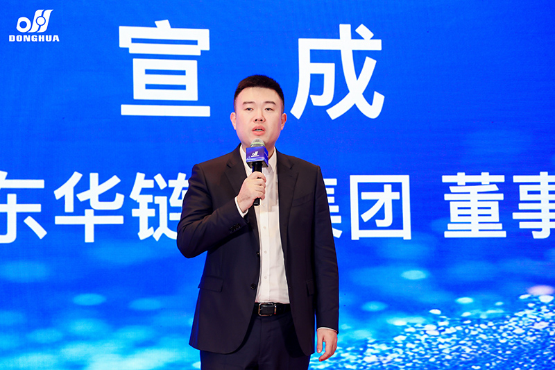 董事長宣成講話。他首先歡迎大家參會,指出五年間客戶規模持續擴大,多家經銷商業績超三千萬,這與東華專業化、系統化、高端化、國際化的發展方向相契合。